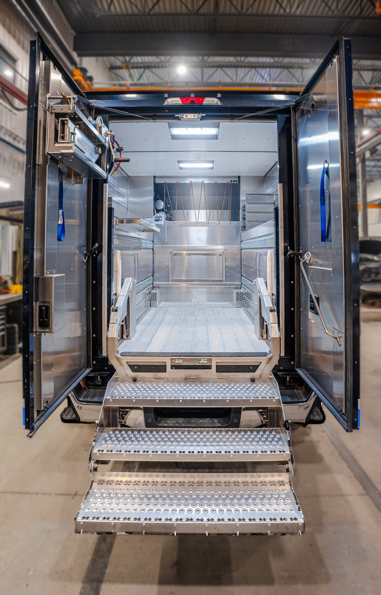 Plateformes spécialisées pouvant être équipées d’une grue ou même d’un chariot élévateur embarqué.