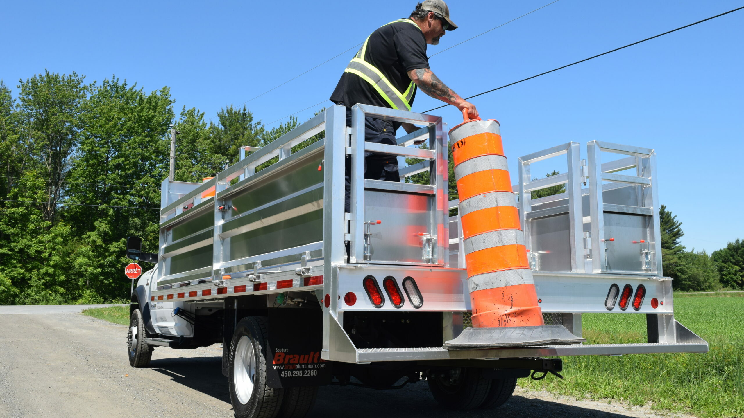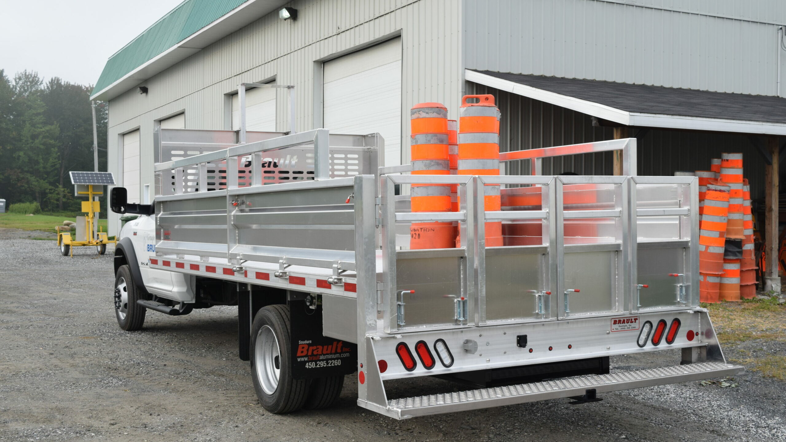 Les plateformes de signalisation Brault sont spécialement conçues pour répondre aux besoins des entreprises de signalisation et des entrepreneurs. Elles permettent de transporter et manipuler facilement différents équipements, tels que les cônes, les butées de béton de type Jersey et autres éléments essentiels aux opérations.